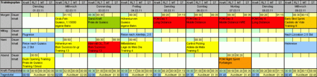 Am Dienstag wäre nochmals eine Langdistanz vom bekannten Kaliber geplant gewesen. Von den vielen Trainings und von der Doppelbelastung mit Middle und Sprint, war ich so müde, dass ich nach einer halben Stunde aufgab und in Richtung Ziel trottete. Auch am Tag danach liess ich den Early-Bird-Sprint, ein Sprinttraining vor dem Morgenessen, aus und nützte den zusätzlichen Schlaf, um mich optimal zu erholen, damit ich in nächster Zeit vollkommen ausgeruht die verpassten ETH-Vorlesungen aufarbeiten kann.